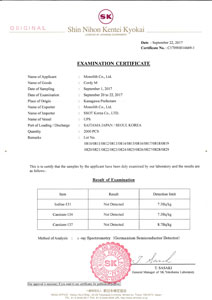 저희 모노리스 동충하초는 해외로부터의 문의도 많기 때문에 수출을 하고 있습니다만, 수출 시 제품이 방사능에 오염되어있지 않은지를 확인하기 위한 증명서 첨부가 요구됩니다.